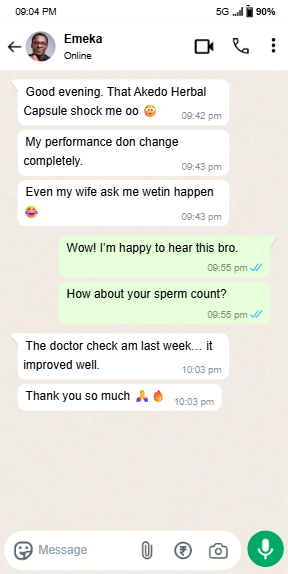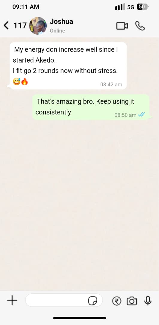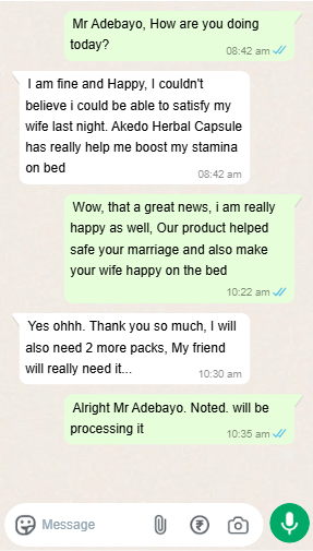 Thank you for saving my relationship, Akedo na baba, after trying other different products... From 2 minutes man to 3 rounds... I'm feeling brand new.
